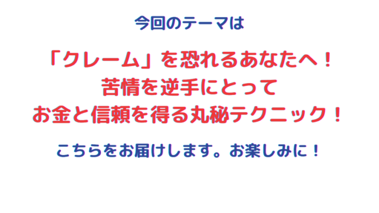 「クレーム」を恐れるあなたへ!苦情を逆手にとってお金と信頼を得る丸秘テクニック!